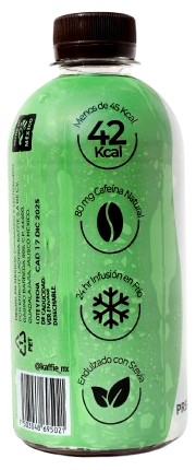 Una opción ligera y refrescante para los amantes del café. Con solo 42 kcal por envase, esta infusión fría aporta energía con 80 mg de cafeína natural y está endulzada exclusivamente con stevia, 350 ml.